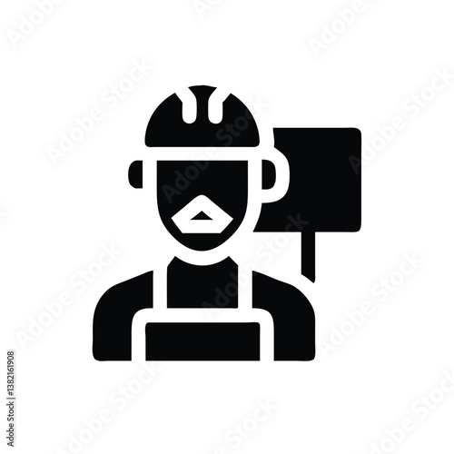 Fototapeta premium Solid Icon of a Construction Worker with a Sign