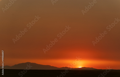 © Jeahn, Fototapeta premium Solid Orange Sunset on Great Plains of Wyoming with Mountains