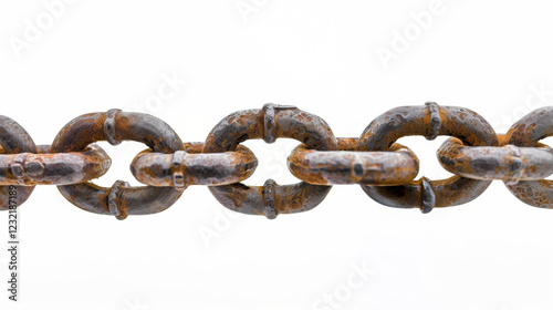 Obraz premium Solid rusty metal black chain closeup, isolated on white background
