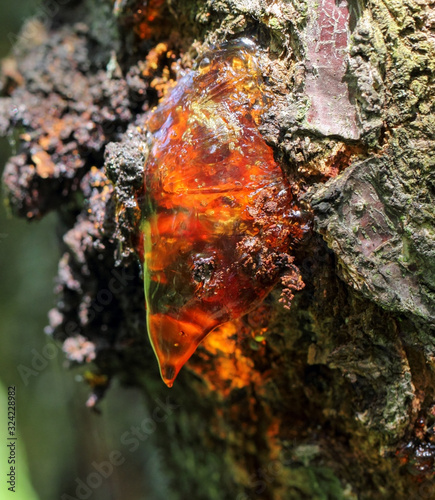 Fototapeta premium Solid tree sap on trunk macro nature detail