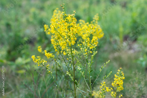 Fototapeta premium Solidago virgaurea, European goldenrod yellow flowers closeup selective focus