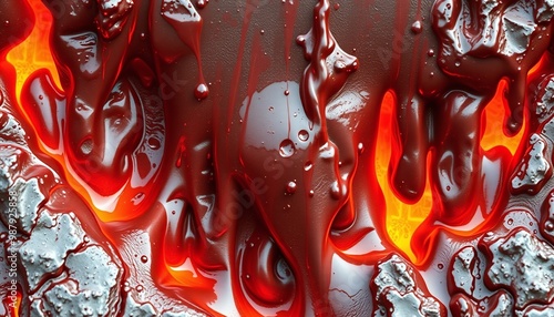 Fototapeta premium Solidified molten metal flow with sharp edges for creative screen backgrounds