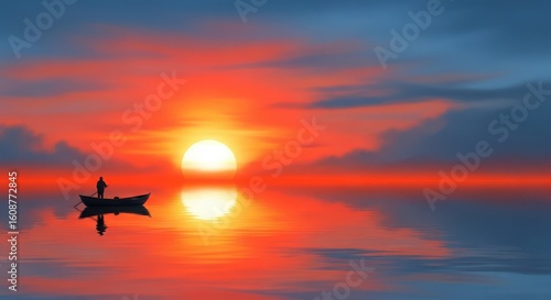 © Ukilats, Obraz premium Solitary Boat At Sunset