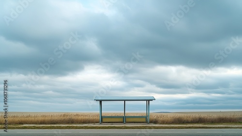 Obraz premium Solitary Bus Stop Under Dramatic Sky