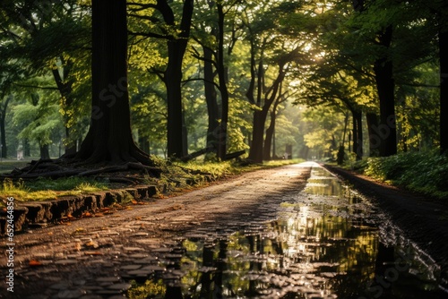 Obraz premium Solitary corridor on green trail during exercise., generative IA
