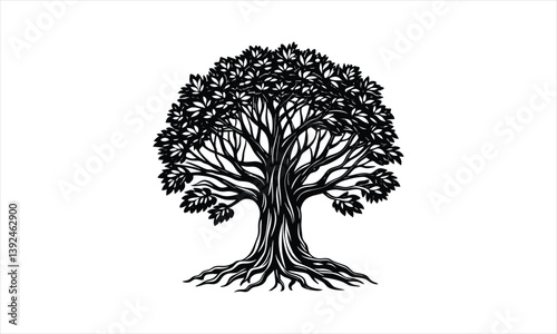 Naklejka premium Solitary Detailed Tree Illustration Art
