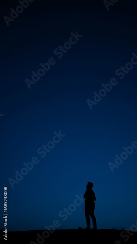 Fototapeta premium Solitary Figure in a Blue and Dark Night Sky vertical