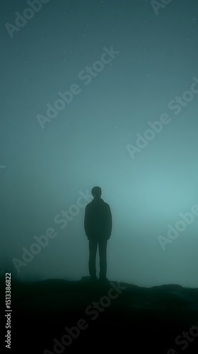 Obraz premium Solitary Figure Under a Starry Night Sky, Mysterious and Ethereal.
