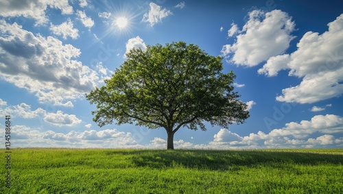 © black, Obraz premium Solitary Oak on Verdant Meadow