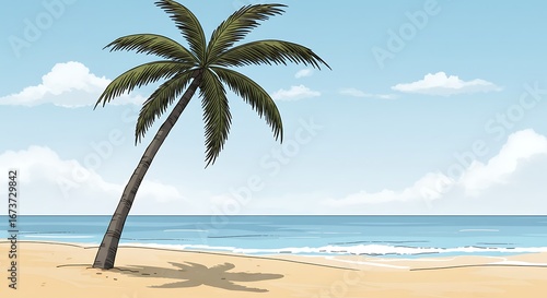 © Jun, Fototapeta premium Solitary Palm, Azure Embrace