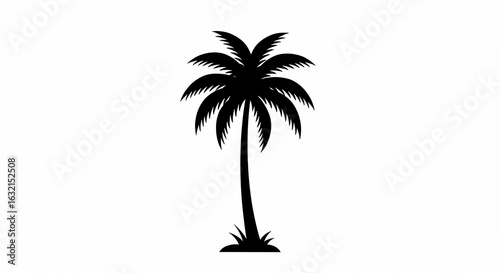 © loxia stock image, Obraz premium Solitary Palm Tree Silhouette Against a Clean White Backdrop, Minimalist Tropical Icon