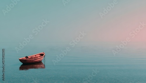 © Danum, Naklejka premium Solitary Rowboat on a Tranquil, Misty Waterscape