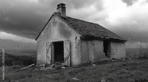 Obraz premium Solitary Ruin: A Black and White Testament to Time's Passage