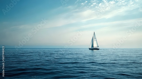 Obraz premium Solitary sailboat on a tranquil ocean.