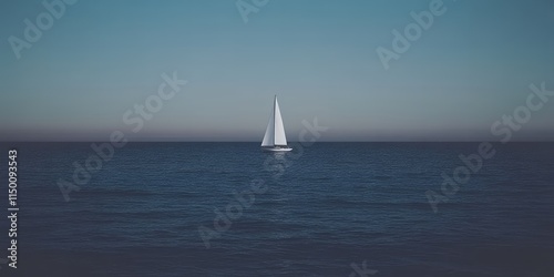 Fototapeta premium Solitary Sailboat on Calm Ocean Serenity Travel Freedom