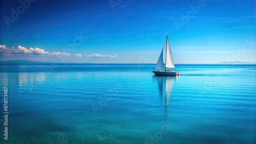 Obraz premium Solitary sailboat peacefully gliding on calm, clear blue waters, Sailing,...