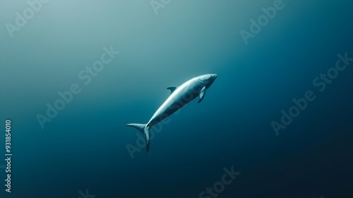Fototapeta premium Solitary Silver Fish Gliding Through Tranquil Blue Ocean