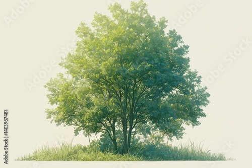 © Nonot, Fototapeta premium Solitary tree boasts lush green leaves against a bright, neutral backdrop