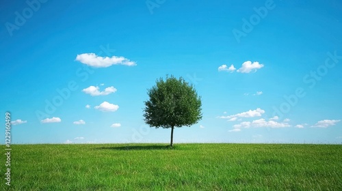 Obraz premium Solitary tree growing in lush green field under clear blue sky nature scene...