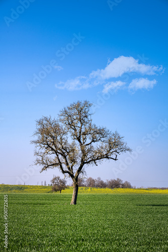 © veronique, Obraz premium Solitary tree in a field on a sunny afternoon in early spring