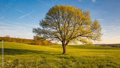 Fototapeta premium Solitary Tree in Bloom on a Hill