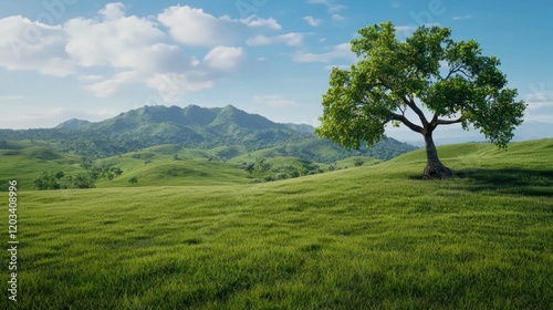 © Sujito, Obraz premium Solitary Tree on Green Hill