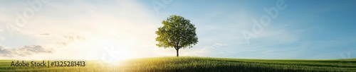 © Sangsung, Fototapeta premium Solitary Tree on Hilltop with Bright Sky and Gentle Sunrise