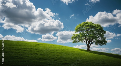 Fototapeta premium Solitary Tree Peaceful Standing on Hill against Blue Sky