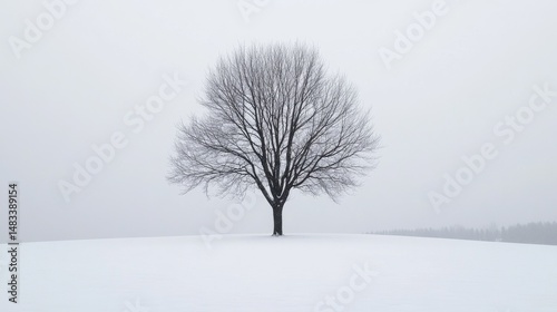 Fototapeta premium Solitary tree standing majestically on a snow-covered landscape winter...
