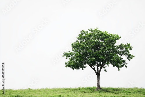 © BWS Stock, Obraz premium Solitary Tree Standing Tall in a Green Field Under a Cloudy Sky