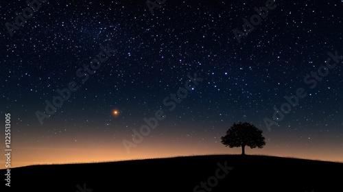 © amorn_m, Obraz premium Solitary Tree Under a Starry Night Sky