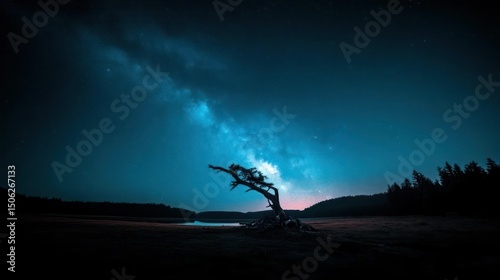 Fototapeta premium Solitary Tree Under a Starry Night Sky