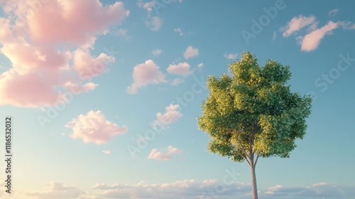Obraz premium Solitary tree under soft clouds in a serene evening sky creating a peaceful and tranquil natural landscape scene