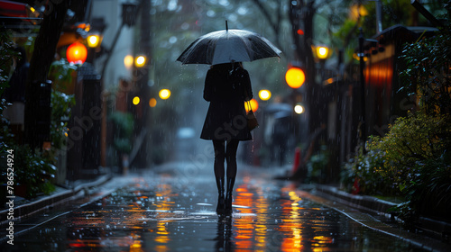 Obraz premium Solitary Walk on a Rainy Evening in the City.
