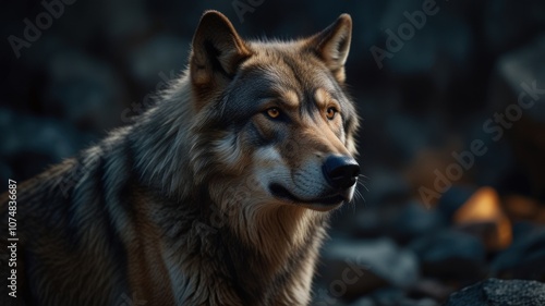 © Lycee, Fototapeta premium Solitary Wolf, A Watchful Gaze