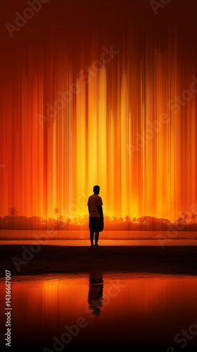 Fototapeta premium Solitude and Spectacle: A lone figure stands in quiet contemplation, gazing...