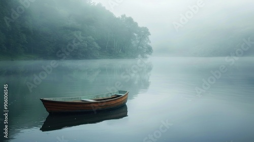© IKA SYAFITRI, Fototapeta premium Solitude on a Misty Lake