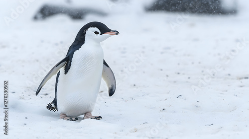 Obraz premium Solo Penguin Walking on Snowy Landscape in Wintery Environment