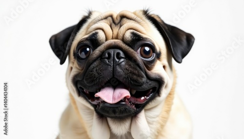 © Jameo, Obraz premium Solo pug, alert expression, pure white backdrop, companion, pug, portrait