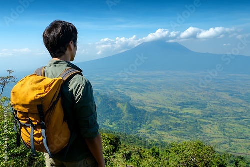 Naklejka premium Solo Traveler Gazing at Mountainous Landscape