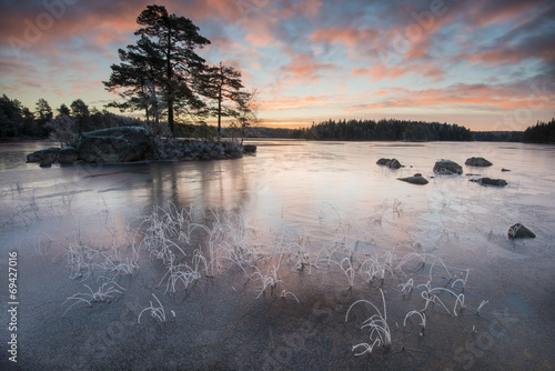 © robineriksson, Fototapeta premium Soluppgång vid den frusna sjön