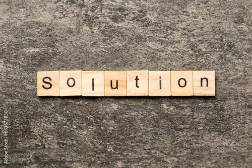 Fototapeta premium solution word written on wood block. solution text on table, concept