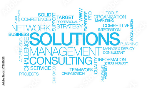 © morganimation, Obraz premium Solutions management consulting network word tag cloud image