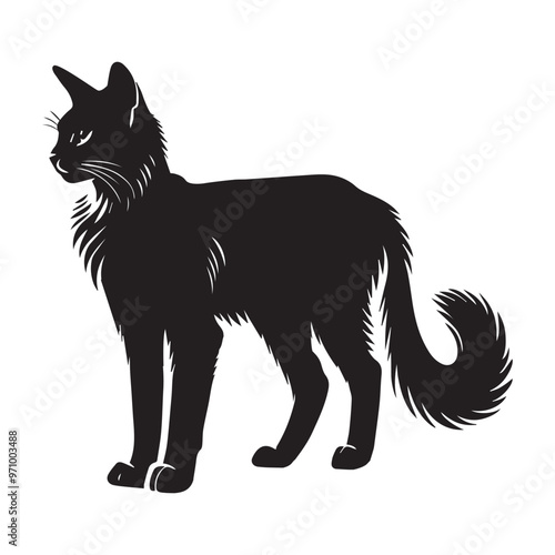 © Shineoxstock, Obraz premium Somali cat silhouette Clipart - Cat Vector illustration in black and white