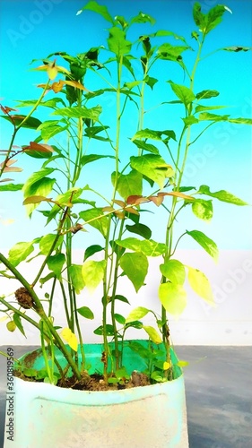 © Sushanta, Obraz premium Some chilli seedlings in a pot.