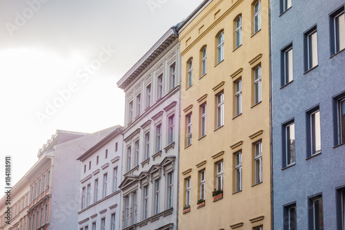 © Novanture, Naklejka premium some colorful houses in berlin with blurry sky