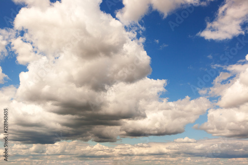 © KDImages, Obraz premium Some dark based cumulus clouds against a dark blue sky
