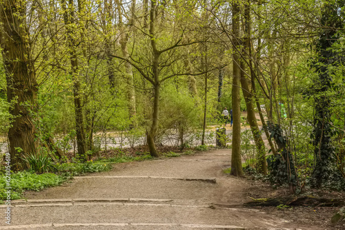 © Casa imágenes, Fototapeta premium some steps in the park, with trees and plants on either sides leading up to one another is visible behind