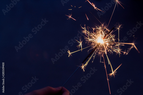 © christine, Obraz premium someone holding a sparkling firework in backyard at night on the 4th of july