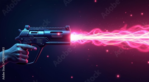 © kramynina, Fototapeta premium Someone is holding a gun with a laser beam coming out of it